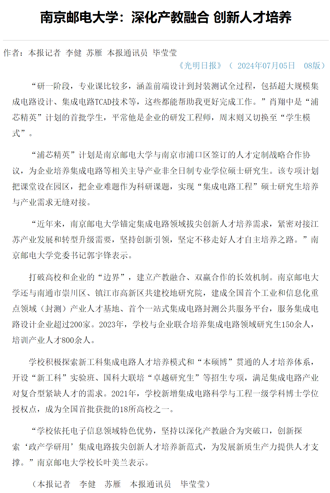 【光明日报】南京邮电大学:深化产教融合 创新人才培养