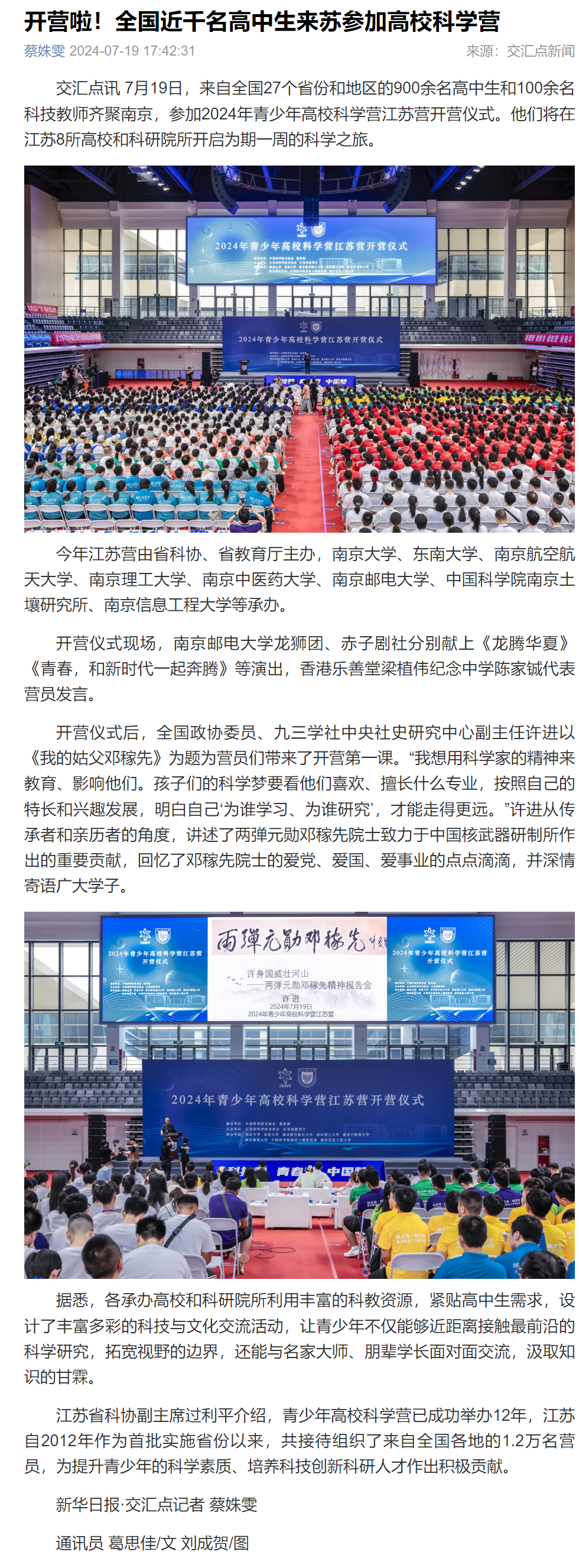 【新华日报客户端】开营啦!全国近千名高中生来苏参加高校科学营