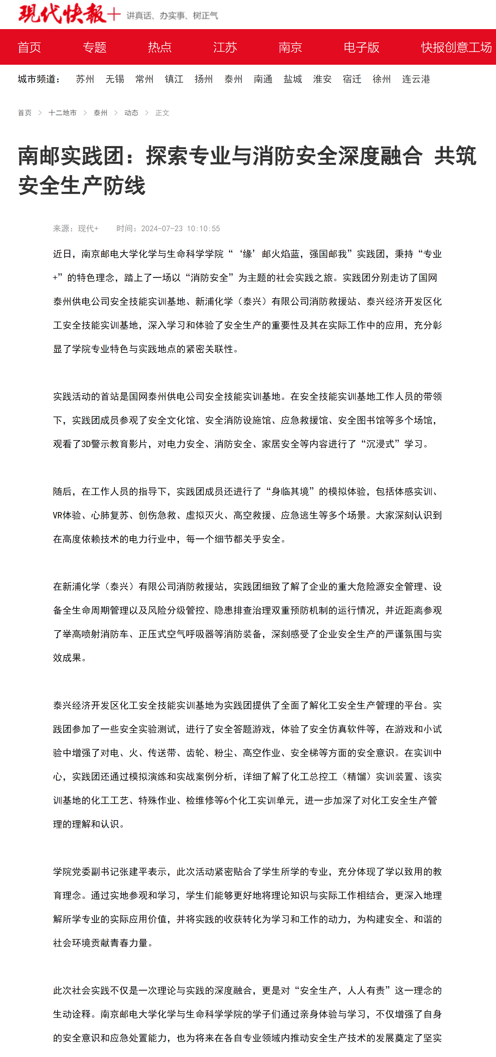 【现代快报全媒体】南邮实践团:探索专业与消防安全深度融合 共筑安全生产防线