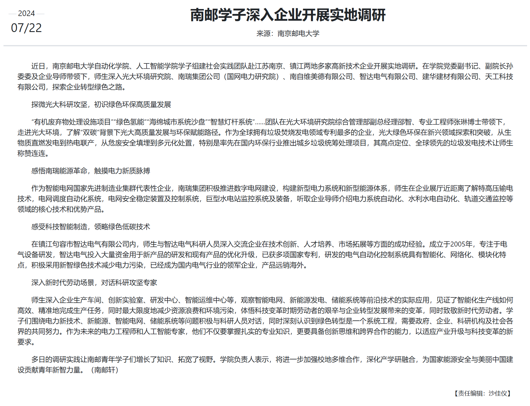 【新华网】南邮学子深入企业开展实地调研