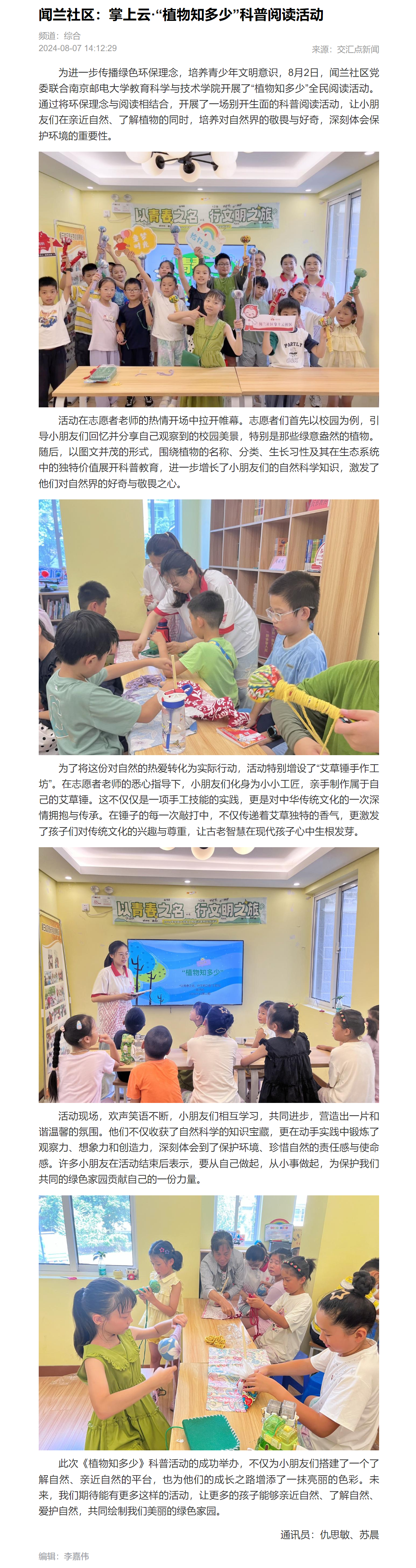 【新华日报客户端】闻兰社区:掌上云·“植物知多少”科普阅读活动