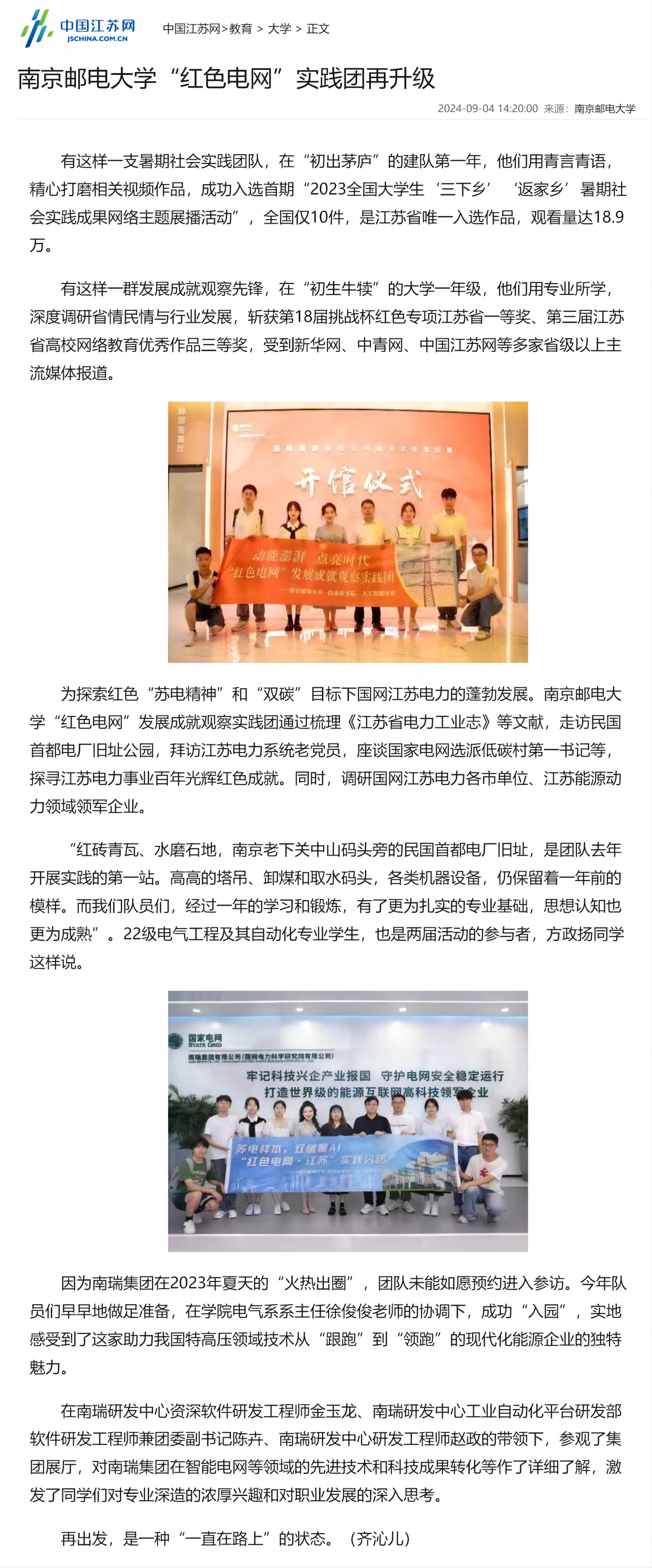 【中国江苏网】南京邮电大学“红色电网”实践团再升级