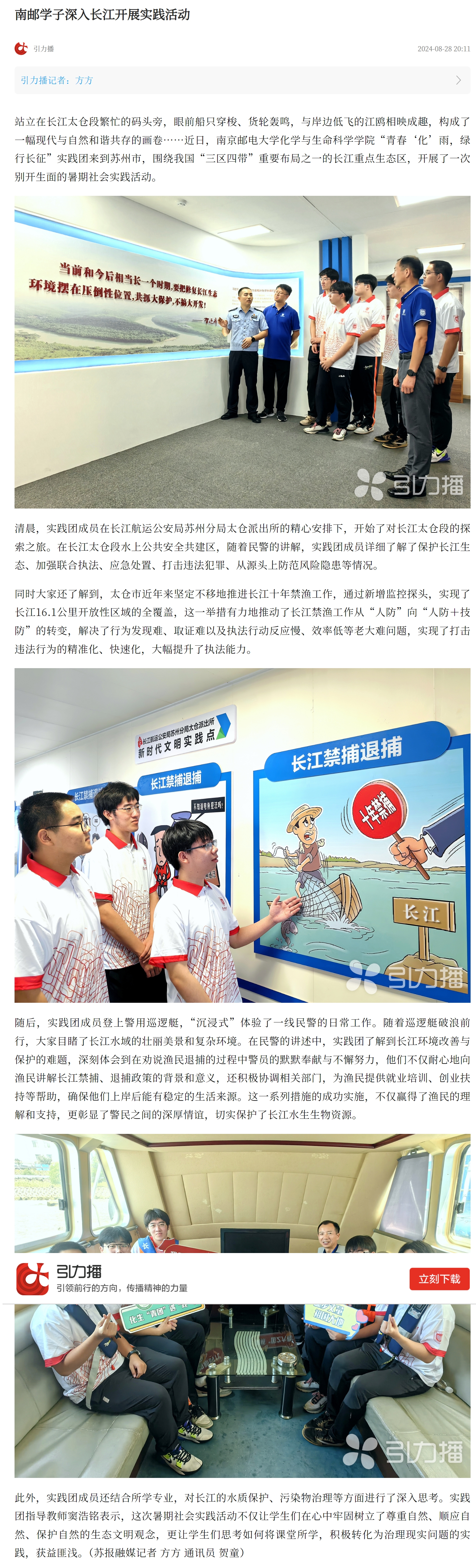 【苏州日报客户端】南邮学子深入长江开展实践活动