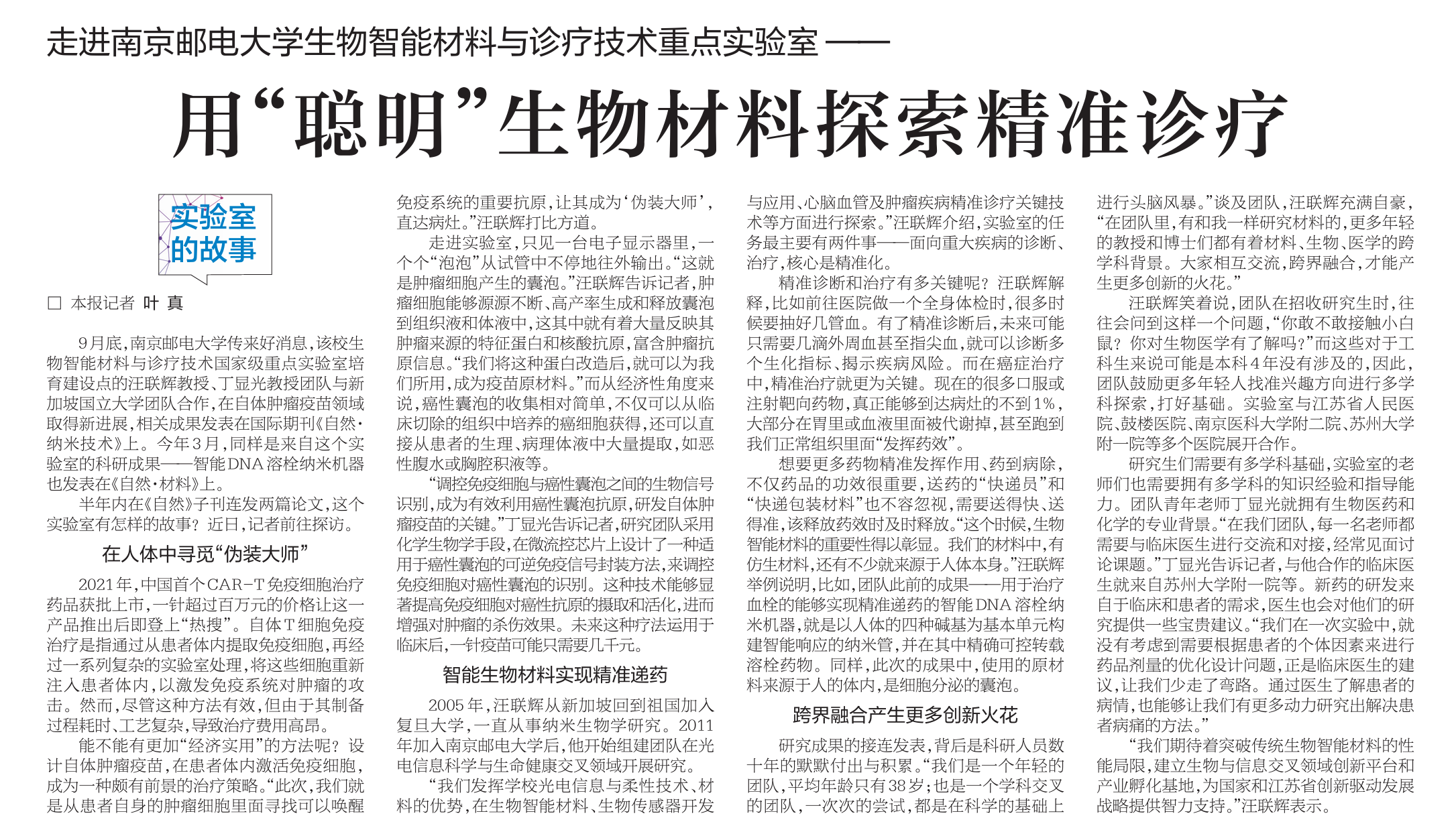 【新华日报】用“聪明”生物材料探索精准诊疗