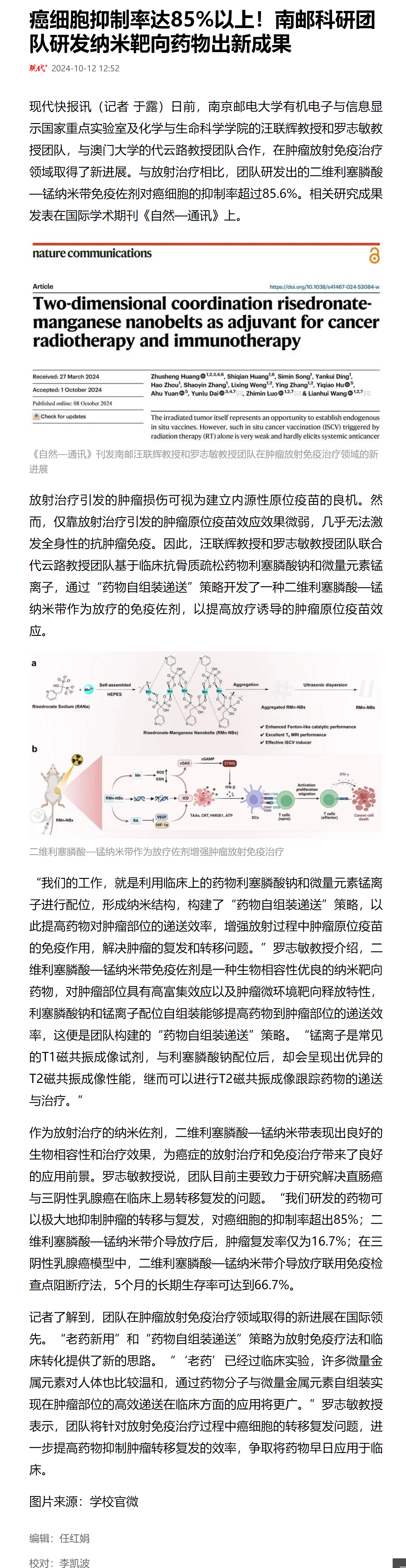 【现代快报全媒体】癌细胞抑制率达85%以上!南邮科研团队研发纳米靶向药物出新成果