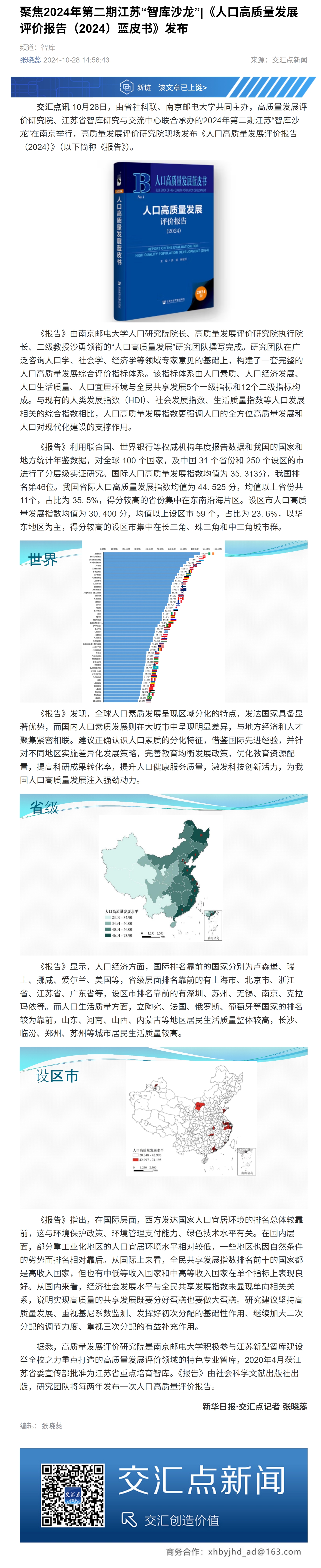 【新华日报客户端】聚焦2024年第二期江苏“智库沙龙”|《人口高质量发展评价报告(2024)蓝皮书》发布