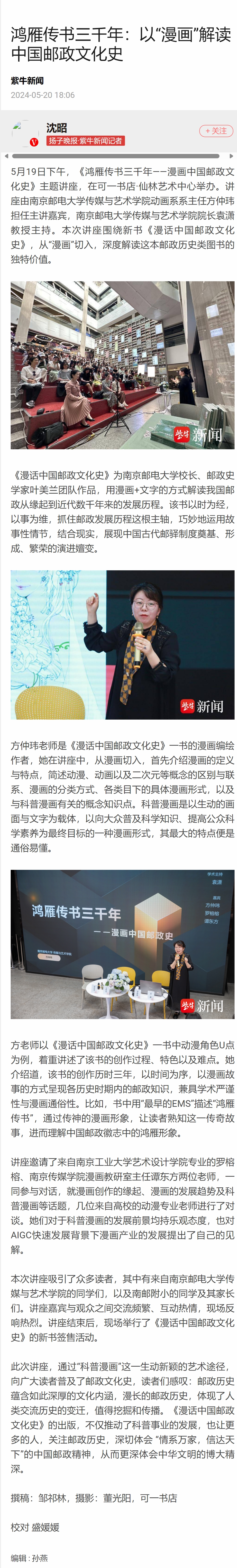 【扬子晚报客户端】鸿雁传书三千年:以“漫画”解读中国邮政文化史