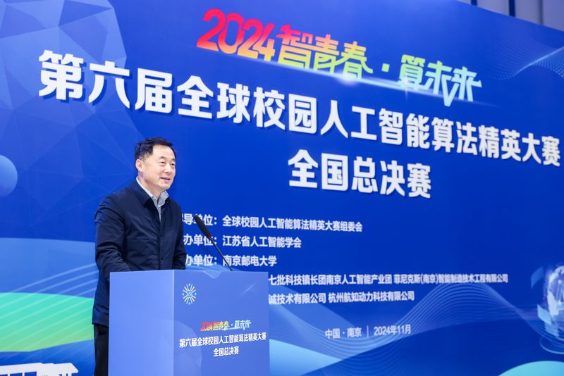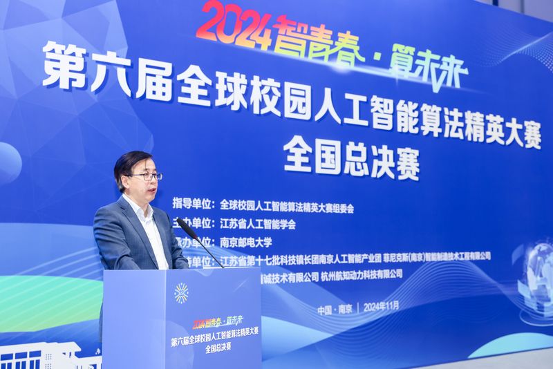 江苏省科学技术协会冯少东副主席对全国总决赛的启动表示热烈祝贺。他提出,希望省人工智能学会以此次大赛为契机,继续发挥省级学会集学术性、科普性、服务性于一体的优势,将赛事办好办实,加速推进科技成果转化进程,助力发展新质生产力。同时希望各位同学能够弘扬科学家精神,争做科研难题的“解题人”、勇立潮头的“先行者”,在竞赛中磨砺自我、突破创新。