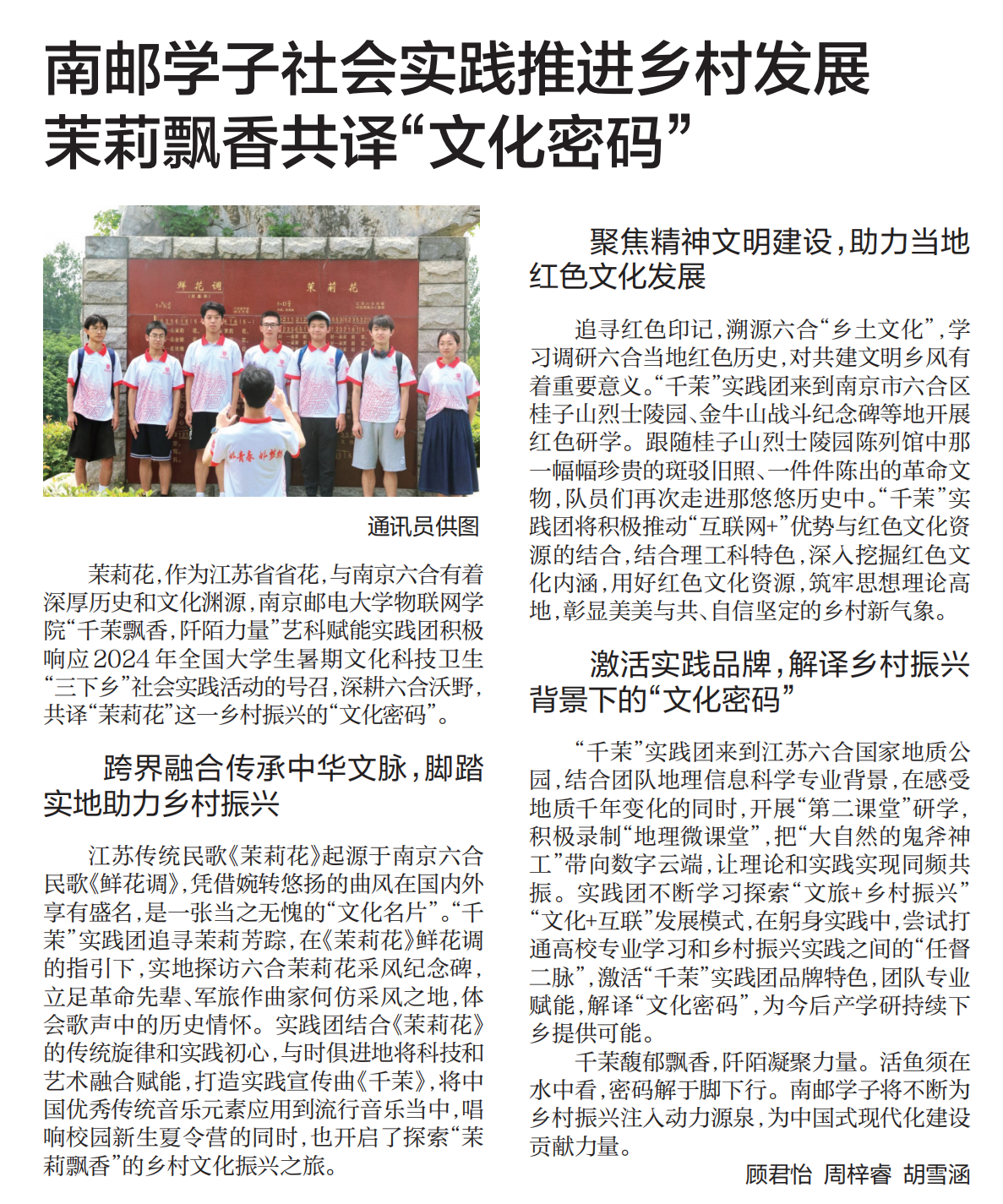 【南京晨报】南邮学子社会实践推进乡村发展 茉莉飘香共译“文化密码”