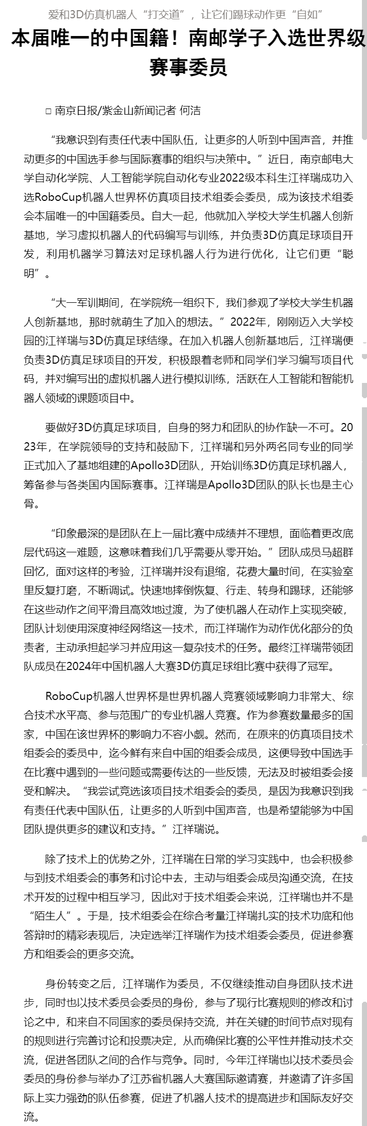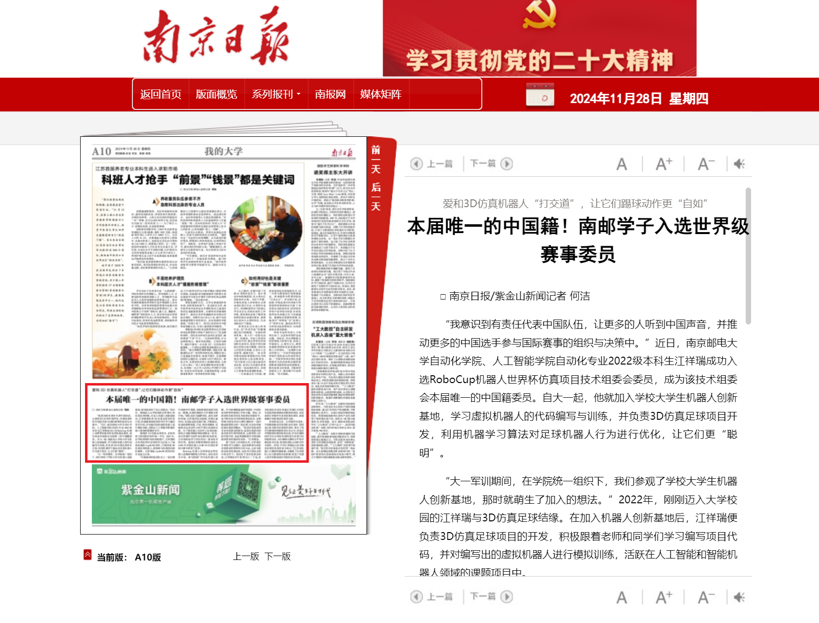【南京日报】本届唯一的中国籍!南邮学子入选世界级赛事委员