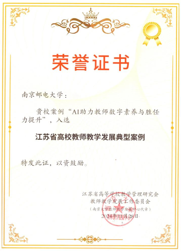 近年来,学校围绕新时代教师队伍建设,在教师教学专业素养提升、教师培训现代化治理、教师教学发展的数字化赋能等方面工作成绩显著,具有一定的示范辐射效果。学校将继续深入推进数智教学,运用人工智能技术赋能教师教学发展,建设能适应多阶段师资培养的教师教学发展管理平台,聚集更多丰富的教师教学发展研修数字资源,提升教师教学能力,提高人才自主培养质量,为新质生产力的发展贡献南邮力量。
