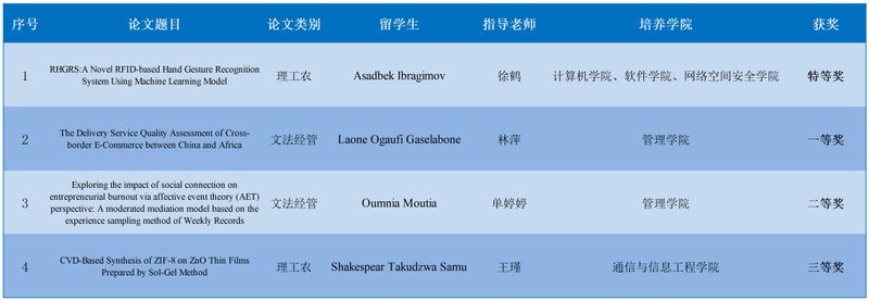 11月30日至12月1日,江苏高校首届外国留学研究生学术交流研讨会在镇江举行。南邮留学生获“学术论文奖”特等奖、一等奖、二等奖、三等奖各1项,学校荣获“优秀组织奖”。