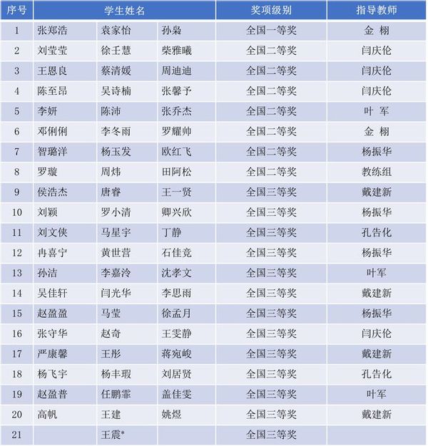 获奖学生名单(*号表示该生与其他高校学生联合组队参赛)