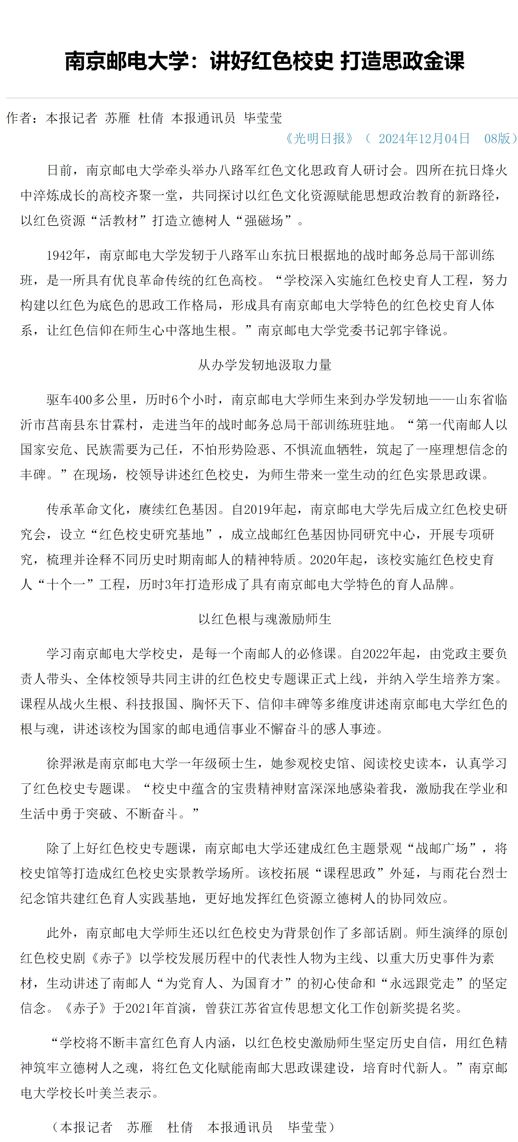 【光明日报】南京邮电大学:讲好红色校史 打造思政金课