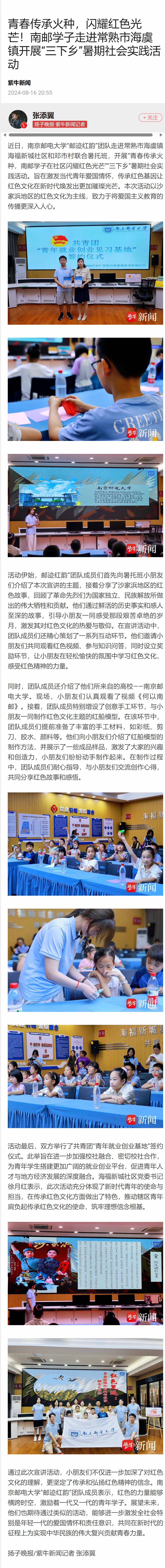 【扬子晚报客户端】青春传承火种,闪耀红色光芒!南邮学子走进常熟市海虞镇开展“三下乡”暑期社会实践活动