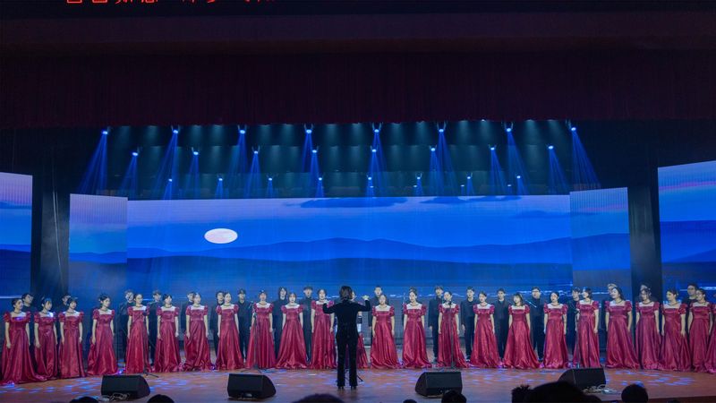 新年晚会以铿锵昂扬的新派龙狮秀《龙腾华夏》开场,气势磅礴的交响乐《激情燃烧的岁月》激发了学子的家国情怀,原创朗诵《这是一张怎样的脸》歌颂了校友徐六保将青春与热血奉献给祖国边防事业的感人事迹,原创合唱《青春燃烧的火种》等作品展现了学子们青春似火的蓬勃力量,舞蹈《石榴花开》勾勒出56个民族像石榴籽般凝心聚力、团结友爱的美好画卷,摇滚乐队带来的《像梦一样自由》等歌曲展现了青年们在充满诗意与自由的狂野中努力奔跑的模样。