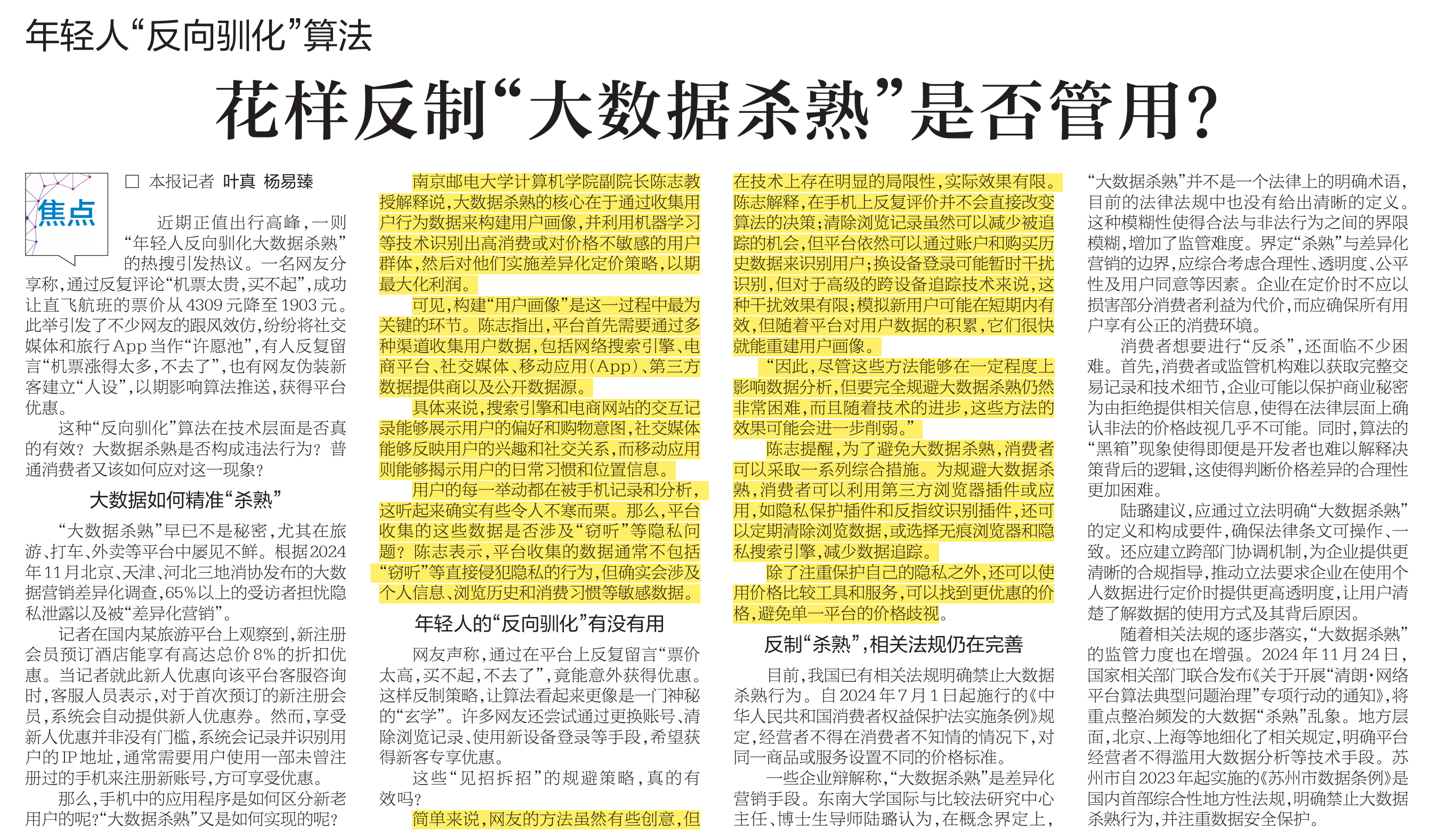 【新华日报】年轻人“反向驯化”算法 花样反制“大数据杀熟”是否管用?