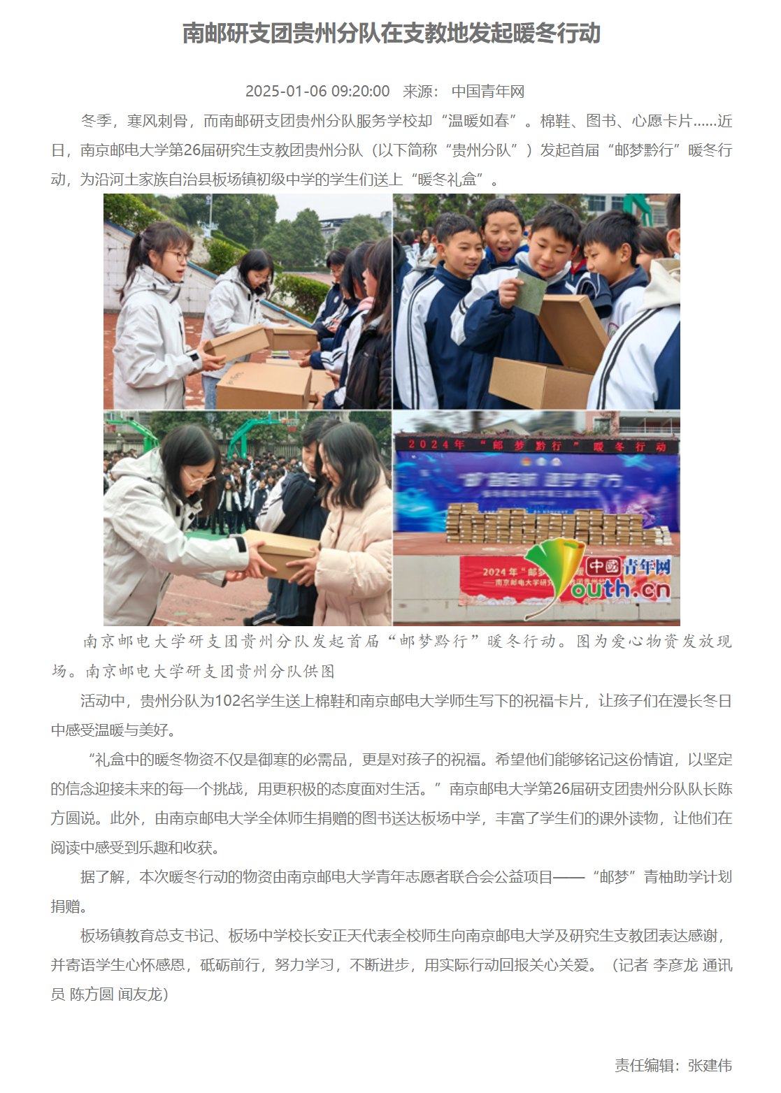 【中国青年网】南邮研支团贵州分队在支教地发起暖冬行动