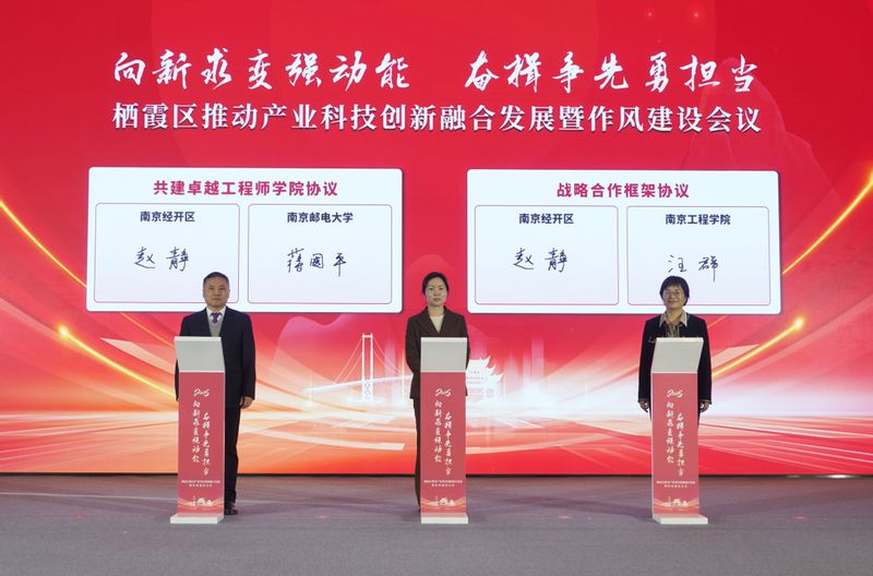 2月6日下午,在栖霞区推动产业科技创新融合发展大会上,南京邮电大学与南京经济技术开发区正式签订共建卓越工程师学院协议,校党委副书记蒋国平参加签约仪式。