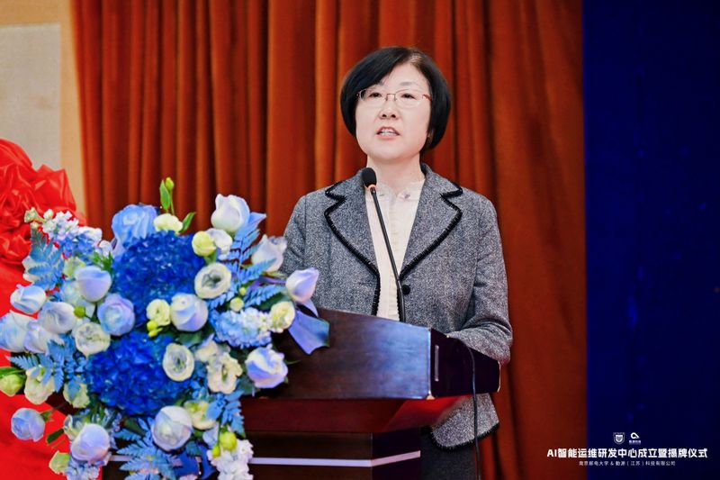 姜小舜副校长致欢迎辞。她简要回顾了南邮的发展历程,学校作为国家“双一流”建设高校、江苏高水平大学高峰计划A类建设高校,在信息通信领域有着深厚的历史积淀与卓越的办学成就。她认为,南邮-勤源AI智能运维研发中心的成立是积极响应国家创新驱动发展战略、深化产学研合作的重要举措,是校企协同创新的重要里程碑。她表示,面对当前人工智能重塑产业生态的趋势,南邮将利用其电子信息学科的优势,结合勤源(江苏)科技有限公司的产业资源,搭建产学研深度融合的创新平台。