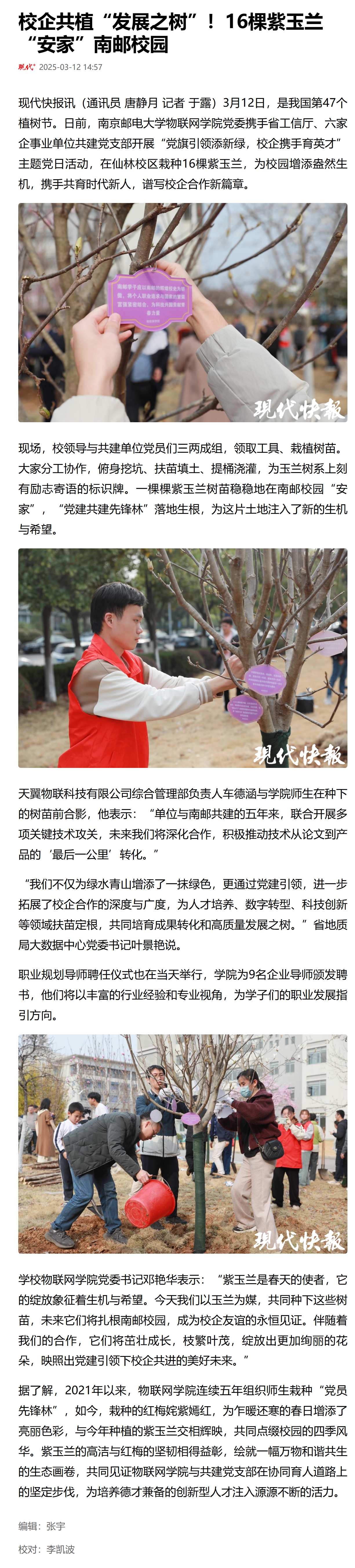 【现代快报全媒体】校企共植“发展之树”!16棵紫玉兰“安家”南邮校园