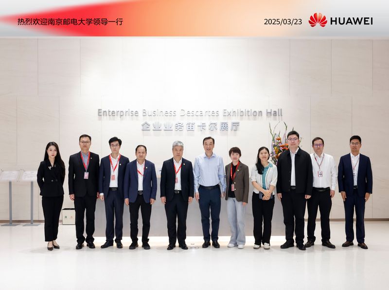 在华为松山湖基地,陈斌校友和华为江苏政企教育医疗系统部部长李庆强、解决方案总监彭迪等介绍了华为的发展和业务情况。他们表示,华为作为全球通信设备供应商,始终致力于用最先进的器件和技术进行产品构建,近年来,华为面对西方国家的遏制打压,不断增强危机意识,加大基础科学领域的创新研究投入,积极解决“缺核少芯”的问题。他们介绍了华为公司算力先遣队与教育系统的合作情况。算力先遣队致力于整合研发、产品、市场等资源,快速响应国内大模型算力需求,基于昇腾芯片和openEuler操作系统,提供覆盖训练、推理、部署的全流程算力解决方案。在教育系统,通过信息化建设服务教育数字化,提升内部治理效益;通过科研平台共建推动产教融合和人才培养,加强半导体、计算机等领域的交叉学科建设。他们认为,南京邮电大学是一所信息特色鲜明的国家“双一流”建设高校,双方合作基础好、优势明显,期待能够继续与南邮开展科研课题申报、产教融合基地建设等方面的深度合作,共同努力提升先进产品的国产化水平,为经济社会高质量发展贡献更多力量。