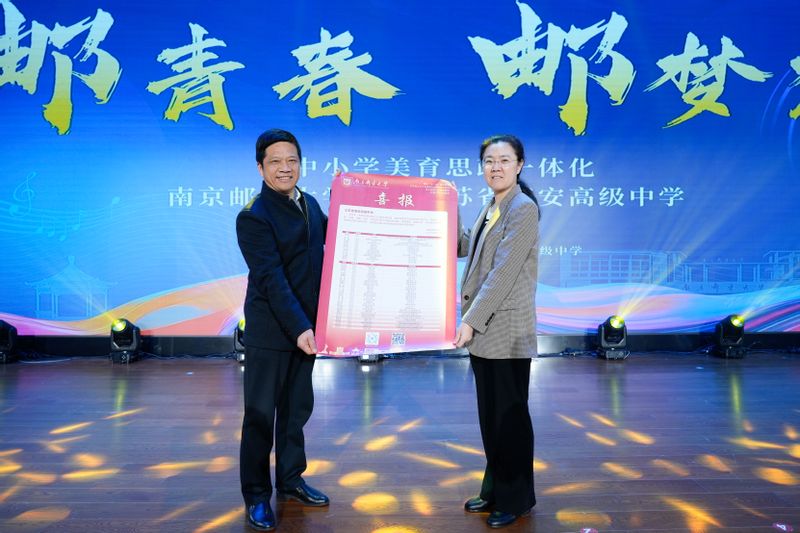 3月23日,美育浸润“邮青春·邮梦想”专场演出——南京邮电大学走进江苏省海安高级中学和江苏省曲塘高级中学,开展大中小学思政一体化活动。校党委常委、副校长谢平为中学颁发优秀学子喜报,江苏省海安高级中学党委书记董裕华,江苏省曲塘高级中学党总支书记、校长田光宇,我校相关职能部门和学院负责人,与海安高级中学、曲塘高级中学近3000名师生代表一同观看演出。
