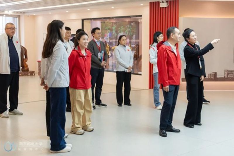 在启动仪式开始前,出席活动的领导嘉宾与杨倩、张雨霏、王赐月三位奥运冠军共同参观了南邮校史馆。在讲解员的引导下,借由珍贵的历史照片、实物展品与多媒体展示,大家深入了解南邮八十余年的办学历史、学科特色以及在信息通信领域取得的突出成就。