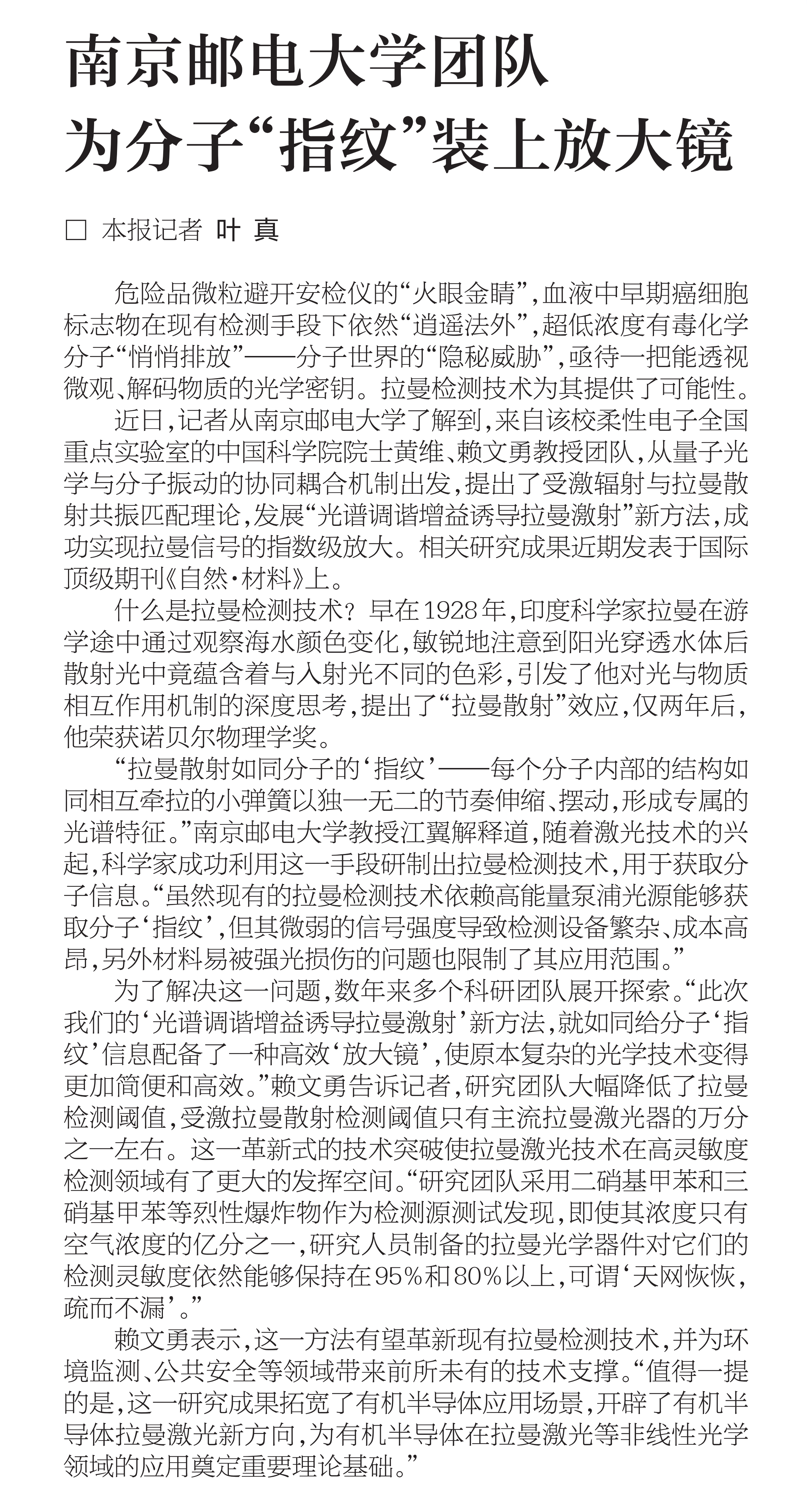 【新华日报】南京邮电大学团队为分子“指纹”装上放大镜