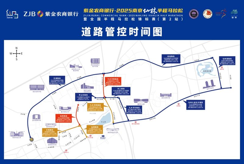 三、根据比赛进行情况,将对下述道路采取分时分段交通管控措施,除持2025南京仙林半程马拉松专用证件的车辆外,禁止其他车辆通行。