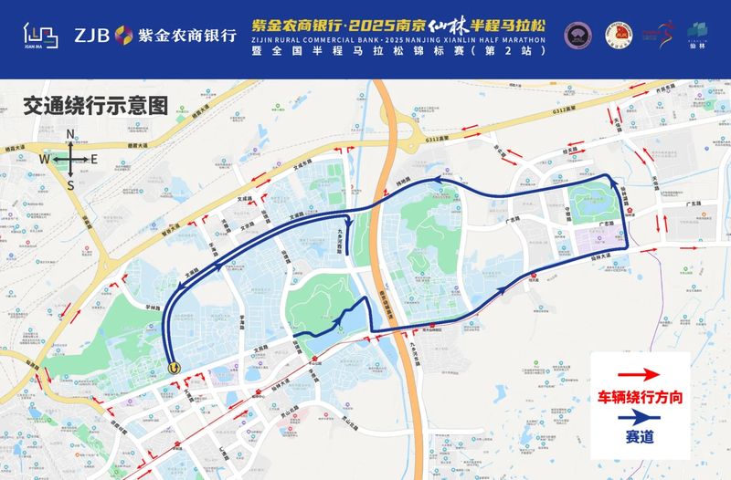 一、2025南京仙林半程马拉松赛主要比赛线路和方向:
