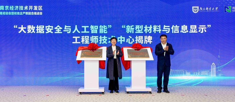 叶美兰校长和蓝军主任共同为南京邮电大学江苏省卓越工程师学院、“大数据安全与人工智能”和“新型材料与信息显示”工程师技术中心揭牌。两个技术中心将作为校地企合作的关键平台,围绕经开区光电显示和人工智能核心产业方向开展技术研发和产业服务,推动科技创新与产业发展深度融合。