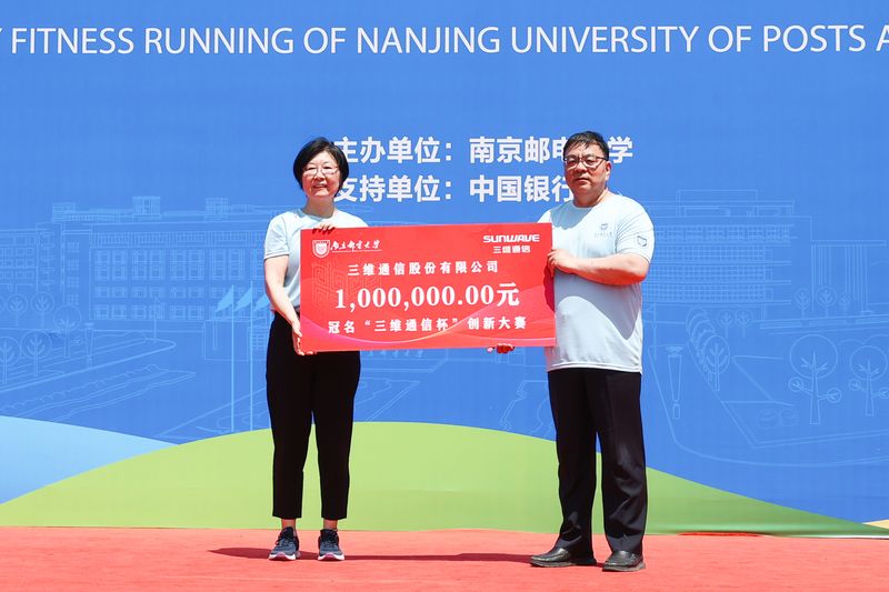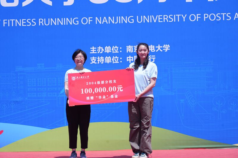 4月20日,“薪火传•踏歌行”南京邮电大学83周年校庆健身跑校园跑后,学校举行了83周年校庆捐赠仪式。校党委常委、副校长、教育发展基金会副理事长姜小舜代表学校接受捐赠。
