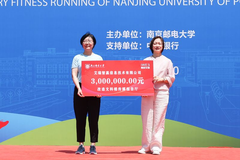 南京艾瑞集团杨利霞董事长代表艾瑞智赢信息技术有限公司捐赠300万元改造仙林校区文科楼传媒报告厅