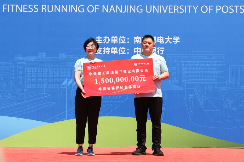 中铁建工集团江苏公司周广总经理代表中铁建工集团第三建设有限公司捐赠150万元维修仙林校区北体育场