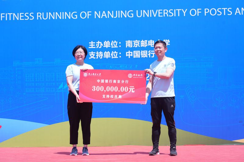 中国银行南京分行万继宏副行长代表中国银行南京分行捐赠30万元支持校庆跑活动