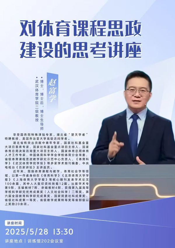 武汉体育学院赵富学教授学术讲座:对体育课程思政建设的思考