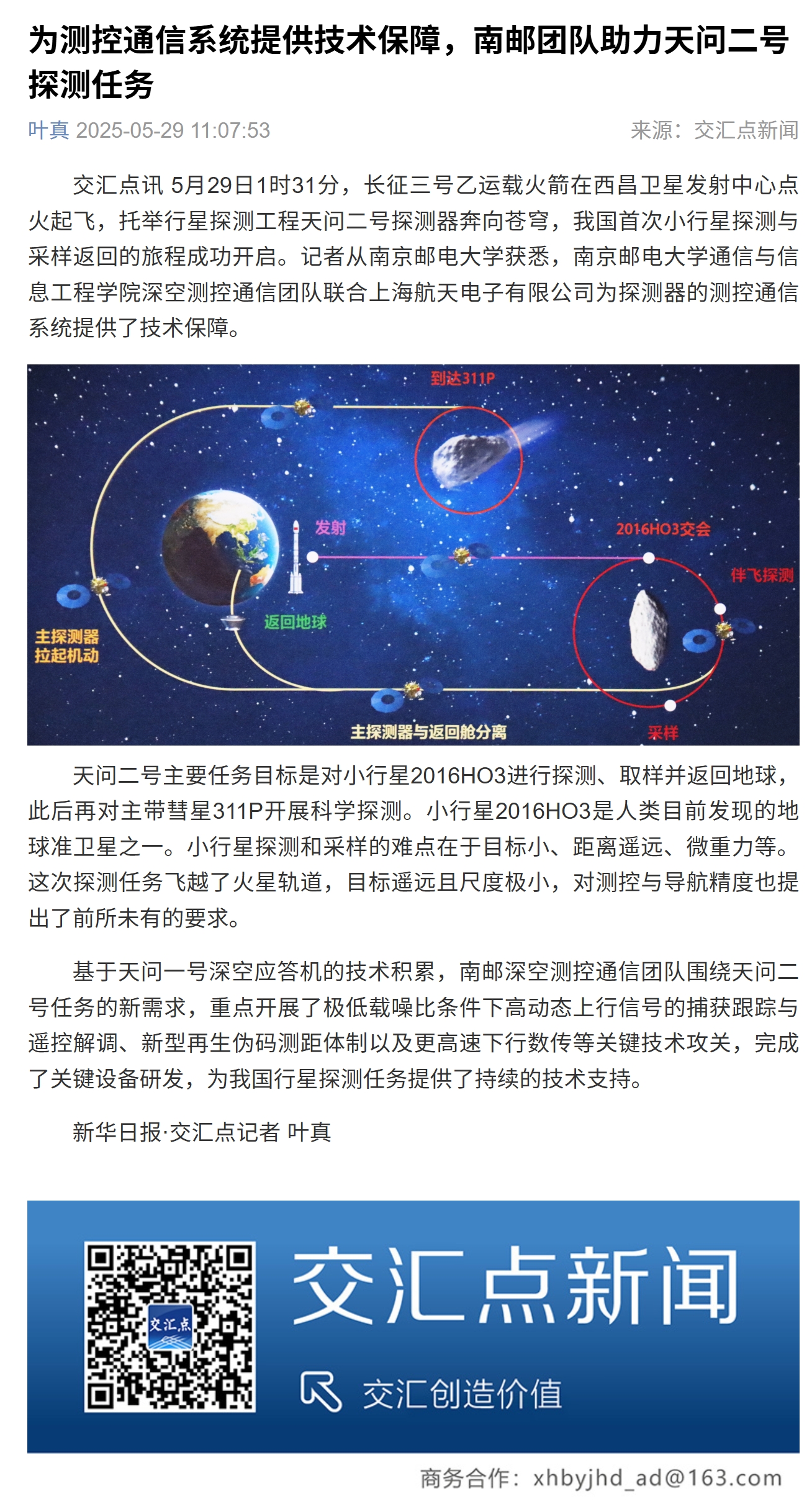 【新华日报客户端】为测控通信系统提供技术保障,南邮团队助力天问二号探测任务
