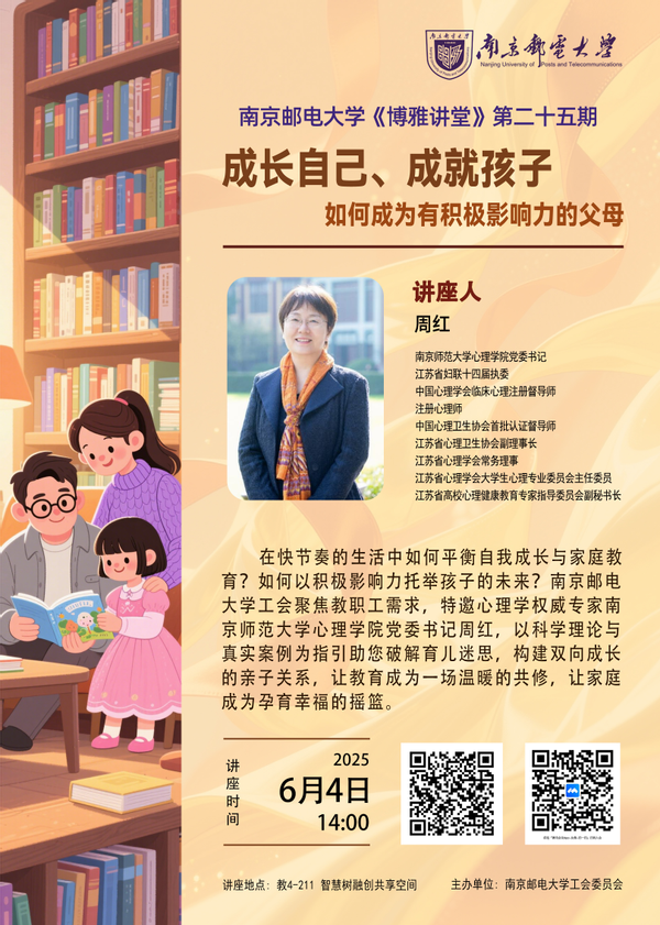 校工会文化润校系列活动——《博雅讲堂》将于2025年6月4日14:00,举办第二十五期《成长自己、成就孩子如何成为有积极影响力的父母》讲座。