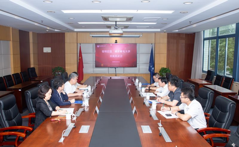 6月11日下午,1992级校友、杭州安恒信息技术股份有限公司董事长兼总裁范渊回南邮调研交流,双方在行政楼第一会议室座谈。校党委书记郭宇锋、校长叶美兰出席会议。