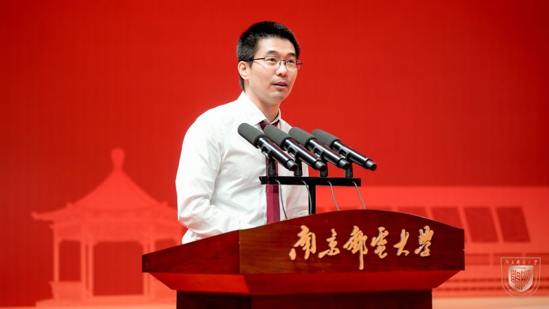 导师代表,国家级青年人才,计算机学院、软件学院、网络空间安全学院博士生导师尹捷明教授向同学们分享了自己留学归国和在南邮工作的感悟和心得。面对“卡脖子”技术难题,他深耕国产高性能处理器和互联IP领域的研究,取得了重要成果,“希望同学们保持独立思考的习惯,期盼大家在各自的工作岗位上找到属于自己的价值和乐趣。”
