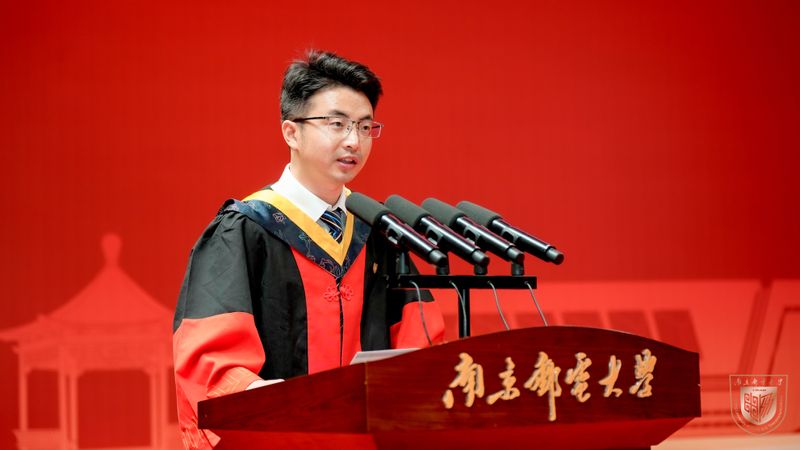 博士毕业生代表,全国高校“百名研究生党员标兵”获得者,计算机学院、软件学院、网络空间安全学院李鹏永向母校、师长、同窗及家人致以诚挚感谢,并深情回顾了在南邮开展科学研究、参加社会实践的点点滴滴。他说,“作为新时代南邮人,我们将坚定扛起信仰的旗帜,点燃科技报国的星星之火,在各自的工作岗位上恪尽职守,以实际行动弘扬母校荣光。”