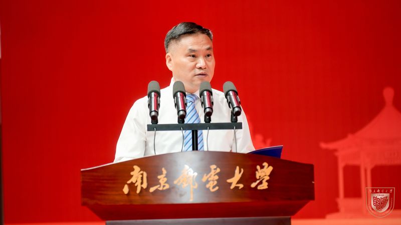 郭宇锋代表学校向毕业生们表示热烈的祝贺和诚挚的祝福,向在同学们求学道路上付出辛勤汗水的各位老师和家长致以崇高敬意和衷心感谢。“你们或紧跟前沿热点,研究成果发表在世界顶级期刊;或深耕创新实践,在各项学科竞赛中斩获佳绩。你们以青春之名,践行科技报国的铮铮誓言。”他回顾了同学们与学校共同走过的岁月。在同学们即将离开南邮校园、踏上崭新征程之际,寄语毕业生:坚持科技向心,做人文精神的传播者;坚持科技向真,做原始创新的破壁者;坚持科技向善,做人类福祉的赋能者。