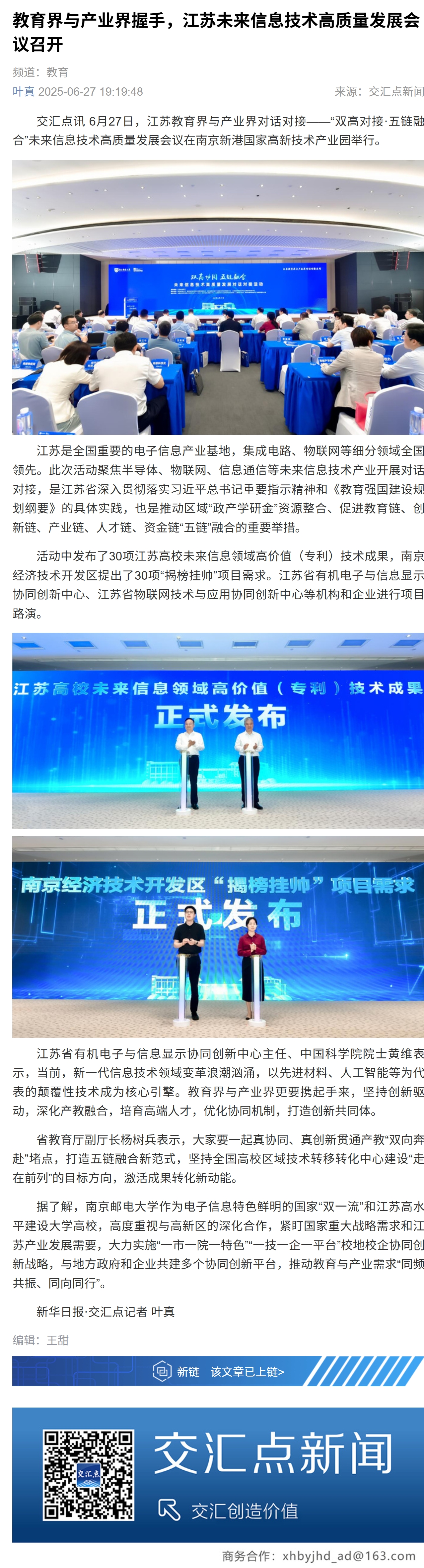【新华日报客户端】教育界与产业界握手,江苏未来信息技术高质量发展会议召开