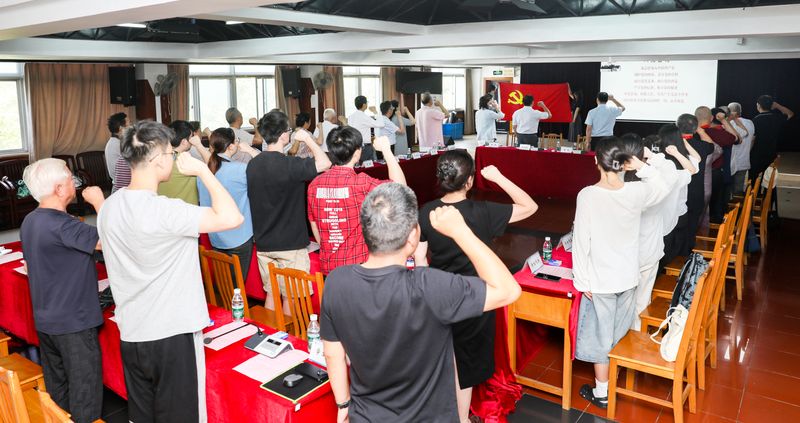 与会党员热烈庆祝中国共产党成立104周年,共度“政治生日”。
