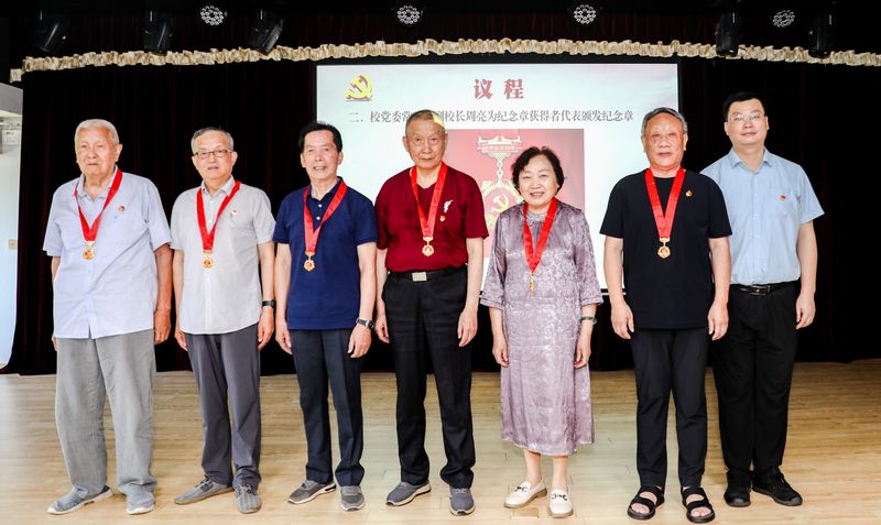 周亮对获得“光荣在党50年”纪念章的老党员们表示崇高敬意和热烈祝贺。他表示,作为学校改革和发展的开拓者和建设者,老党员的奉献精神和高尚品质为学校发展注入了强大动力,为青年学生树立了良好榜样。全体党员要以老党员们为榜样,学习先进事迹和崇高精神,汲取智慧和力量,加强党性修养,提高政治觉悟。