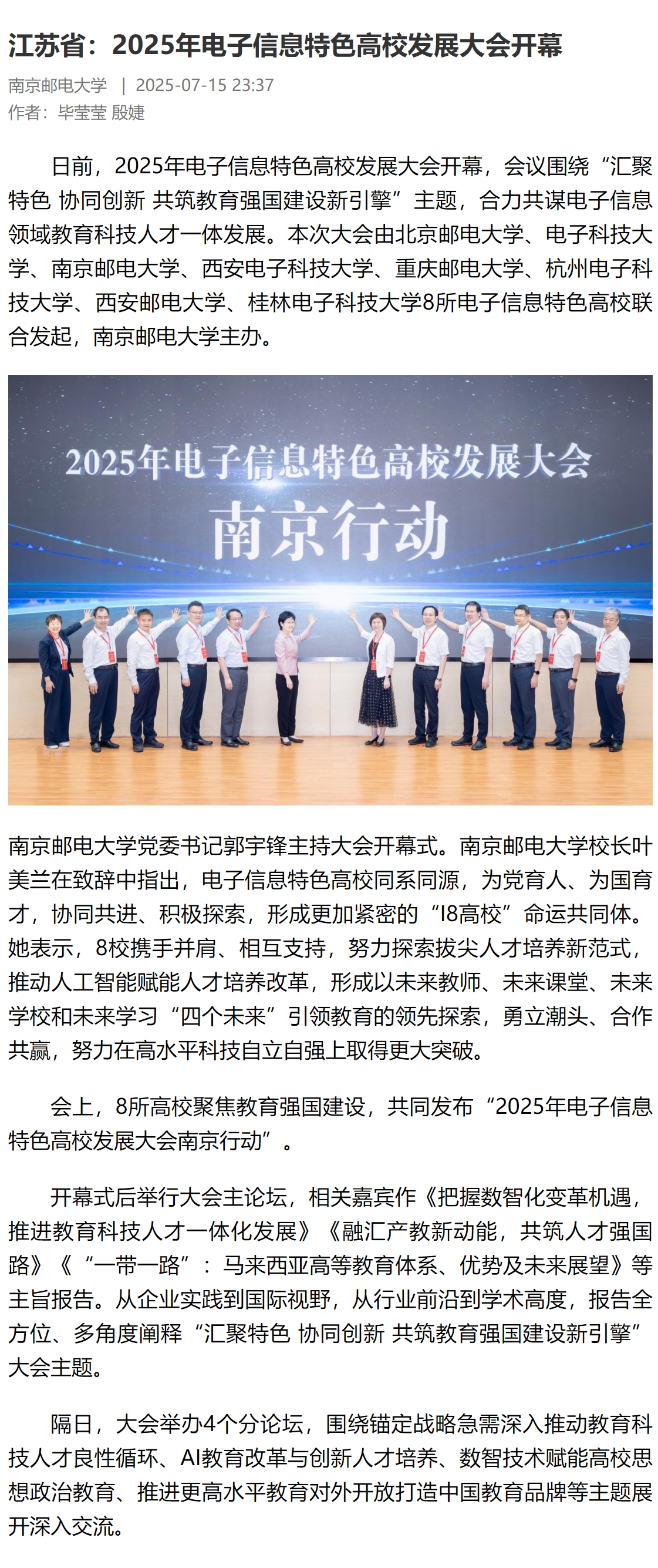 【中国青年报客户端】江苏省:2025年电子信息特色高校发展大会开幕