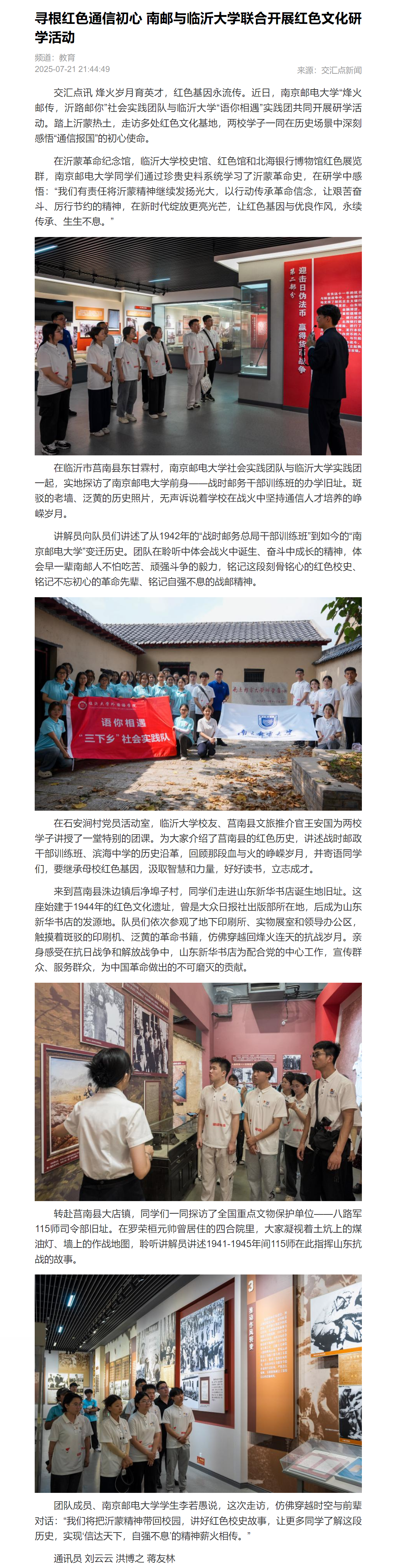 【新华日报客户端】寻根红色通信初心 南邮与临沂大学联合开展红色文化研学活动