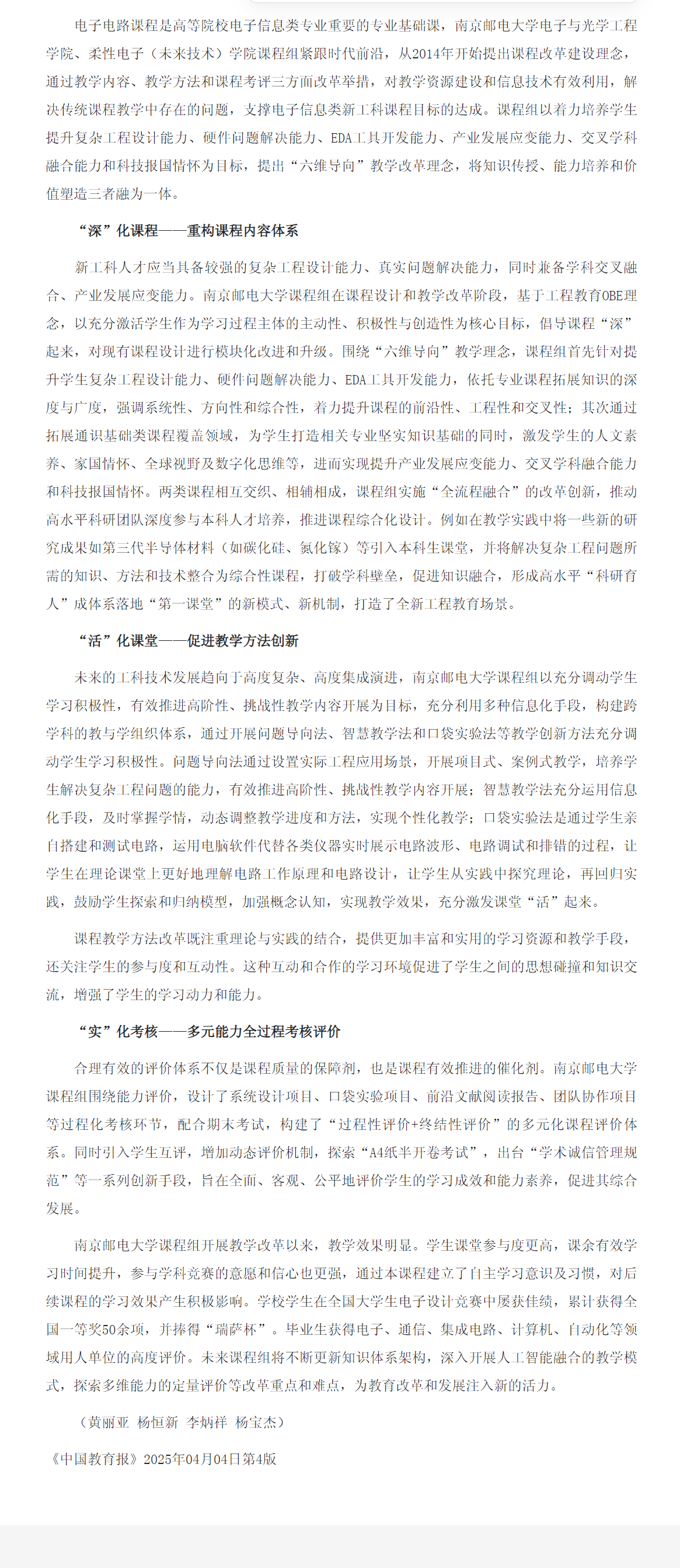 【中国教育报】南京邮电大学以“六维导向”推进工科课程改革