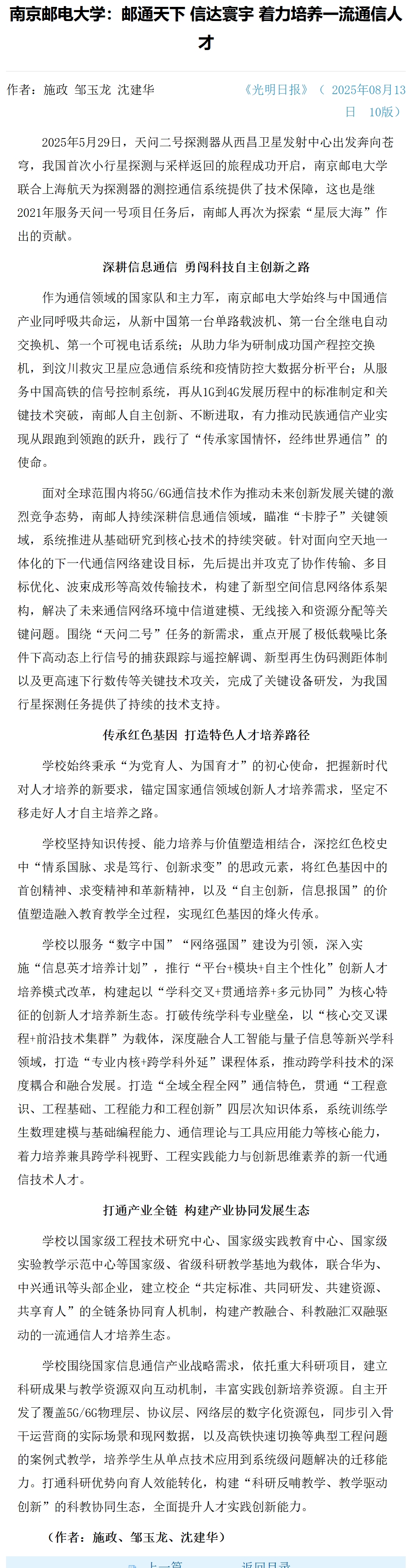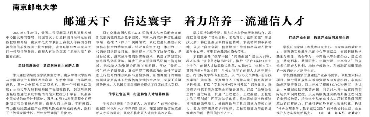 【光明日报】南京邮电大学:邮通天下 信达寰宇 着力培养一流通信人才